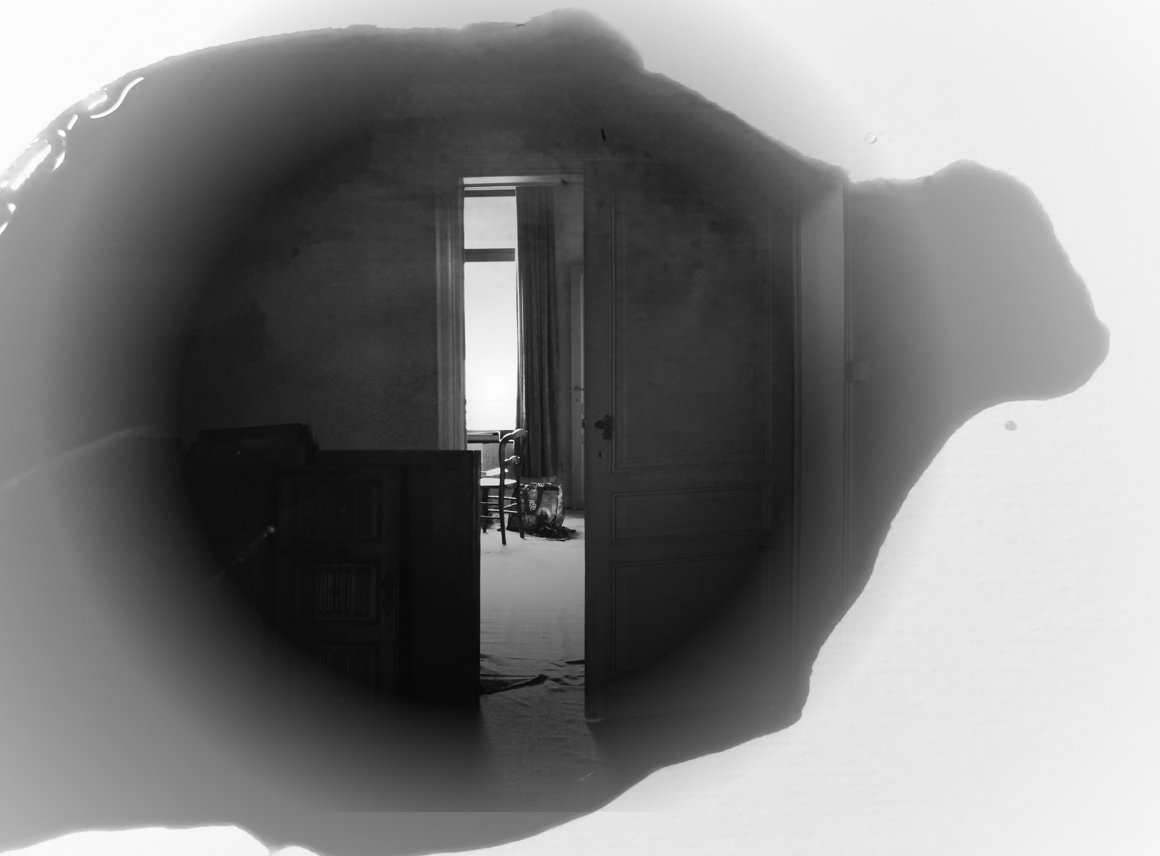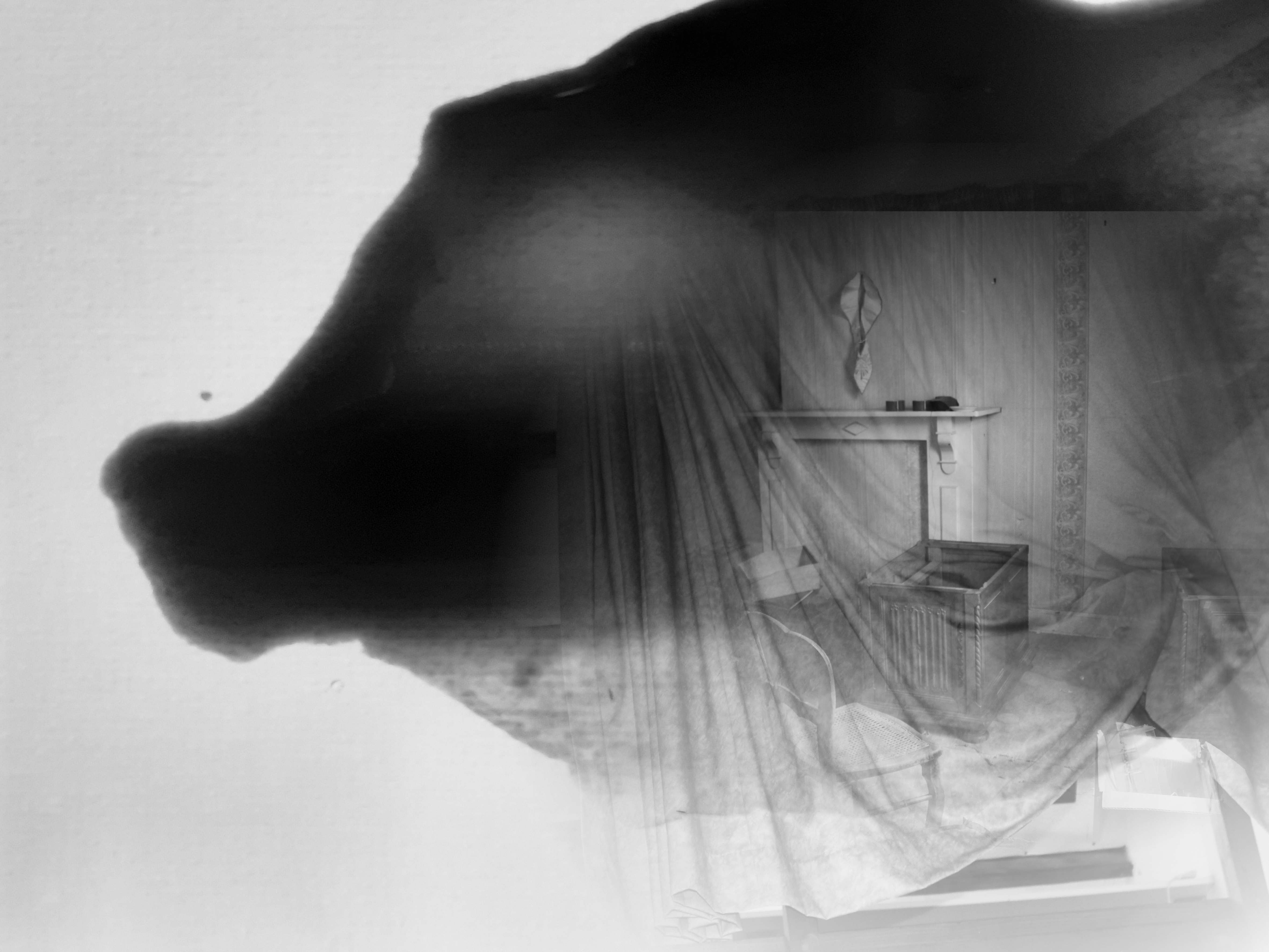 (slide show) Inked Tales, serie of prints of photographic digital collages and India ink, 2021. Created for the book "Maisons d'Ecriture", La Maison Losseau Editions