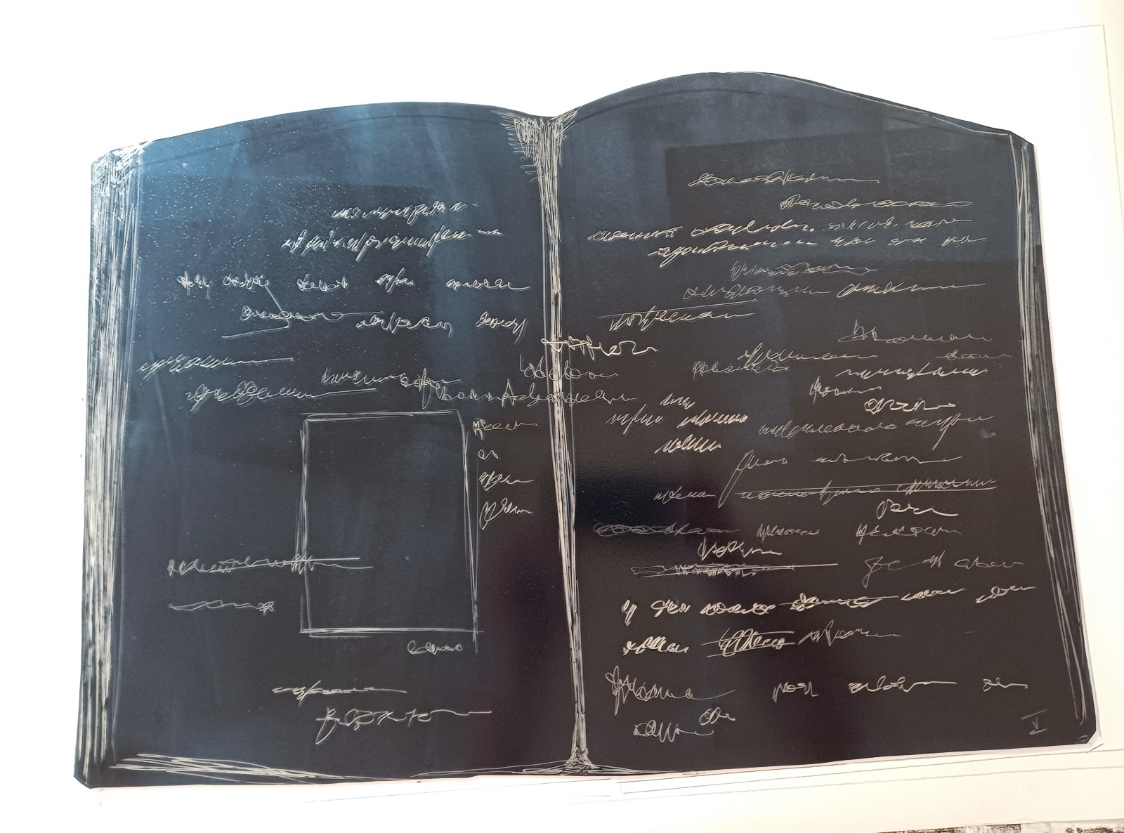 1/ Excerpt of Volumen de territoria ad infinitum, photolithography on Japanese Banshi Tsuru Heritage Washi paper 25 gr, 2022