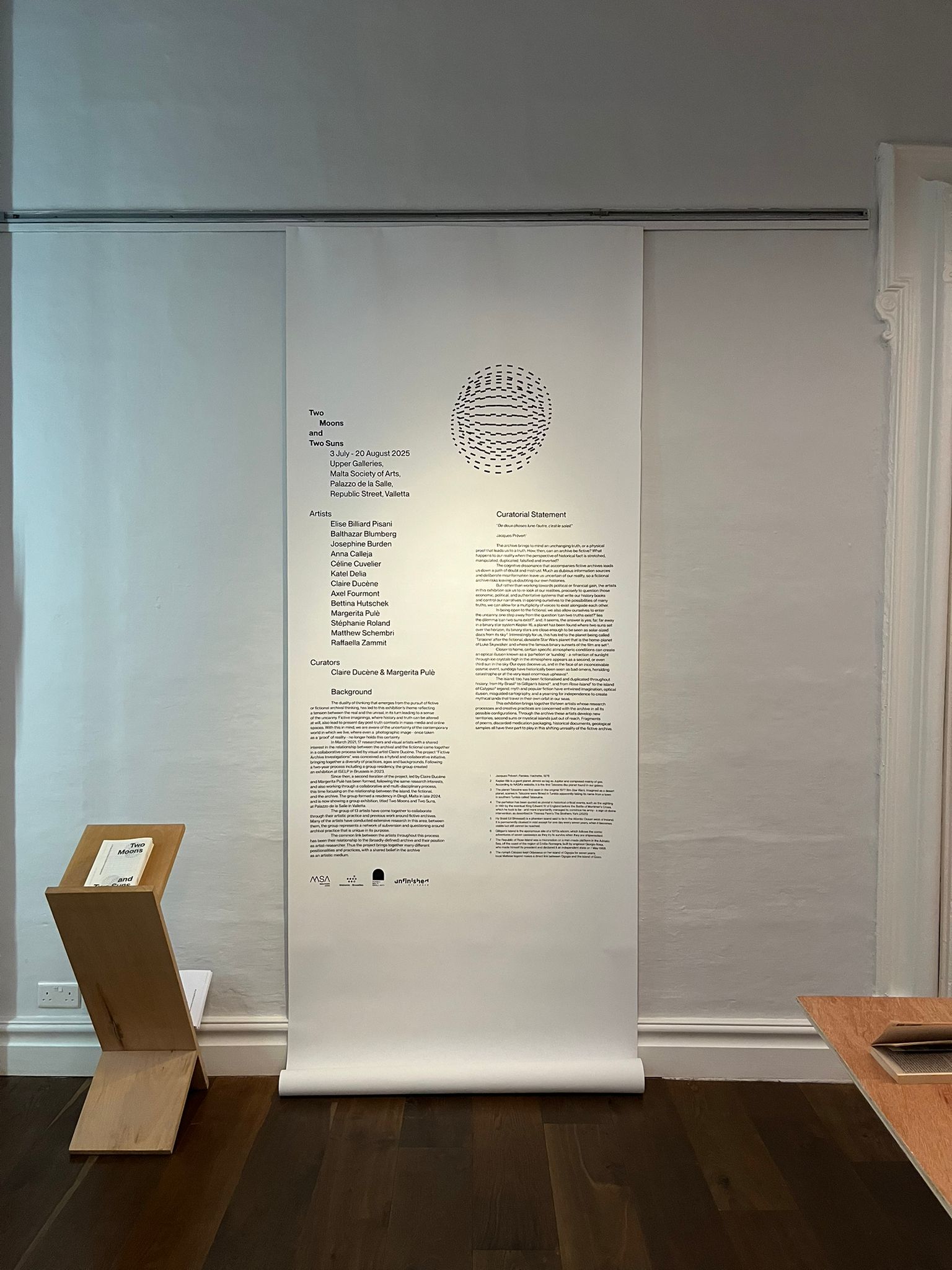 The group formed a residency in Dingli, Malta in late 2024, and is now showing a group exhibition, titled Two Moons and Two Suns, at Palazzo de la Salle in Valletta.